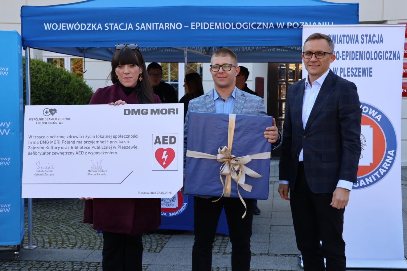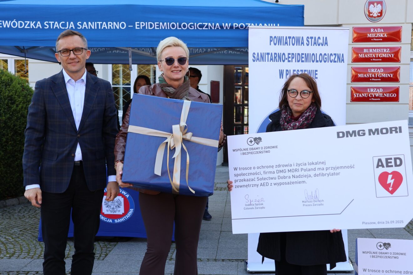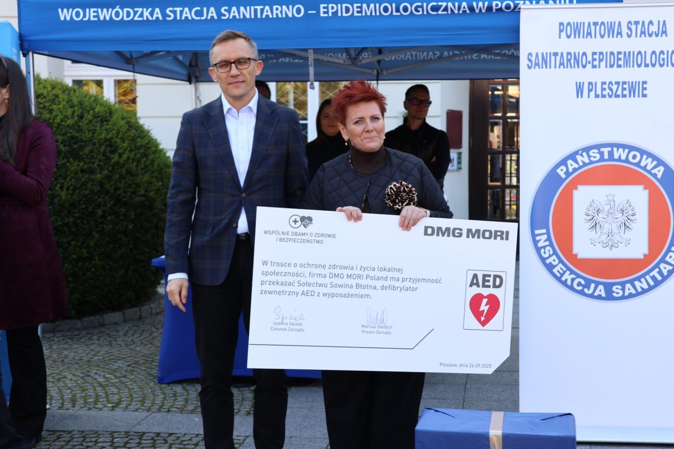 Kolejny raz już przy okazji akcji firma DMG MORI POLAND ufundowała 3 zewnętrzne defibrylatory AED, które zasilą kolejne punkty w gminie i będą gotowe do pomocy w sytuacji zagrożenia życia. Zaczęło się od tego, że przed pierwszą akcją zwróciła się do mnie z prośbą o wsparcie pani wiceburmistrz Izabela Świątek. W zasadzie takiej prośbie nie mogliśmy odmówić i tak już współpracujemy po raz piąty i będziemy to kontynuować – informował Mariusz Derbich, prezes Zarządu DMG MORI POLAND. W sumie firma zakupiła już 15 urządzeń, w całej gminie jest ich teraz 27.