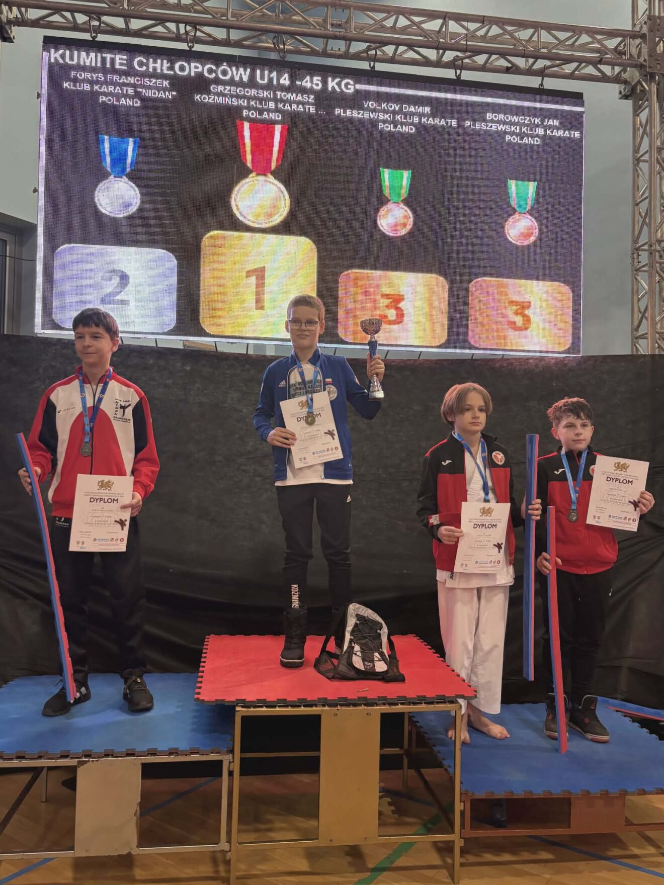 Złotym medalistą został w kumie U12 -30 kg Borys Małgowski wygrywając 3 walki. W finale pokonał swojego klubowego kolegę Macieja Nowakowskiego. Srebrnymi medalistami zostali: Artem Stepanenko w kumite U12 -40kg, Jan Malusi w kumite U12 -45kg, Jan Borowczyk w kumite U12 -40kg oraz Filip Michalski w kumite U14 -50kg. Brąz wywalczyło aż 12 zawodników i zawodniczek.